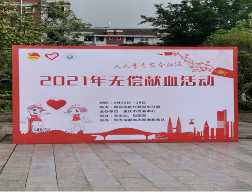 2021年4月26日至28日,献血车来到了重庆医科大学,为期三天的“无偿献血,无尚光荣”献血活动顺利开展。据悉,本次献血活动中广大师生踊跃报名,共计952人参与,献血总量达263220毫升。