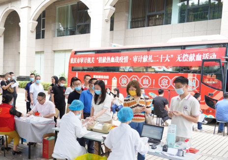 其中市局及主城9区审计局在市审计局机关办公大楼集中献血, 其他区县审计局结合实际在当地自行开展献血。据统计,献血活动当天,市审计局共计有129人成功献血,献血总量36260毫升。 截至6月13日,全市审计机关报名参加献血314人,成功献血261人,献血量达70960ml。