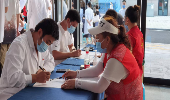 活动现场,来自该院各科室的爱心人士按照疫情防控要求有序排队参与献血。他们中有即将登上手术台的医生,有当天还要继续上班的一线护士,也有管理和后勤岗位的人员……