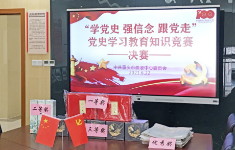 为庆祝中国共产党成立100周年,引导党员干部深入学习党的历史,重温党100年走过的光辉历程,重庆市血液中心开展了“学党史 强信念 跟党走” 党史学习教育知识竞赛。经过四轮激烈的线上初赛,总分排名靠前20名的党员同志脱颖而出,在6月22日下午进行了决赛。
