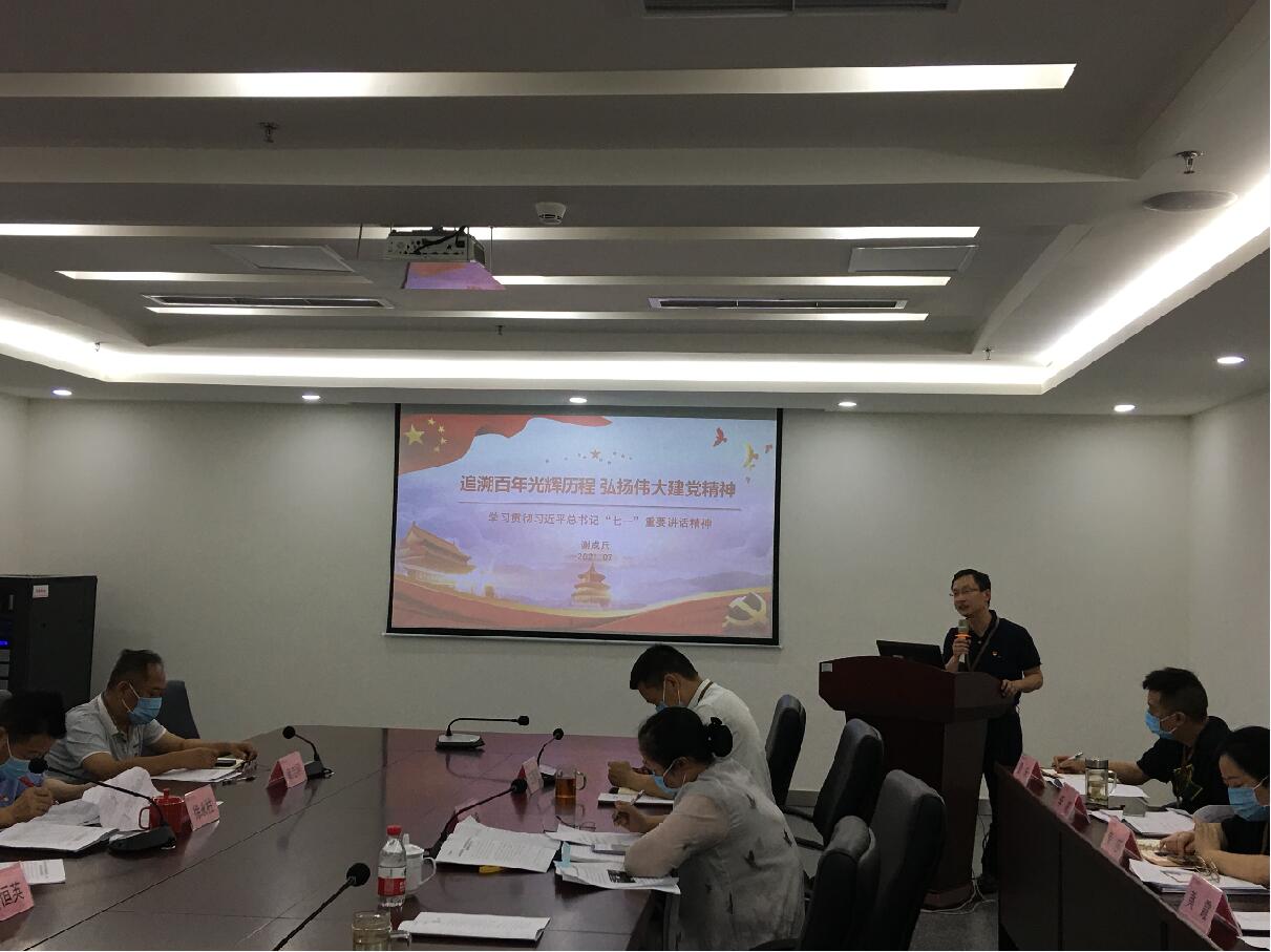 党委委员、中心副主任谢成兵以《追溯百年光辉历程 弘扬伟大建党精神》为题讲专题党课。他结合党史学习教育,系统讲解、深入阐释了习近平总书记“七一”重要讲话的重大意义、主要内容和丰富内涵,带领大家深刻领会了伟大建党精神的内涵要义和“九个必须”的历史经验和重要原则。结合工作实际,他指出要深入学习贯彻习近平总书记提出的一系列新思想新观点新要求,把学习习近平总书记“七一”重要讲话精神同总结经验、联系实际、推动工作结合起来,把学习的成效不断转化为工作的动力和实效。