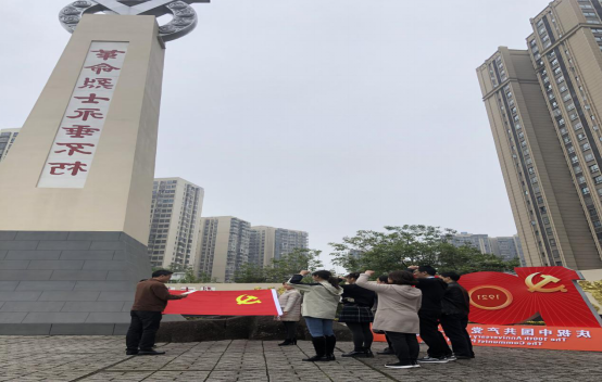 活动当天,大家来到位于永川桂山公园的革命烈士纪念碑园,此碑园是为纪念中国人民解放军、地方干部等在永牺牲的革命烈士,方便人民群众开展悼念活动,于1993年2月落成。碑园主要由烈士纪念碑、浮雕、烈士名录墙组成。现如今被列为市级爱国主义教育基地,其中,位于纪念碑后方的烈士名录墙刻有辛亥革命以来永川籍和在永牺牲的900多名烈士姓名,以供后人瞻仰、吊唁。大家在革命烈士纪念碑前再次重温入党誓词,瞻仰烈士纪念碑园,缅怀革命先烈的丰功伟绩。